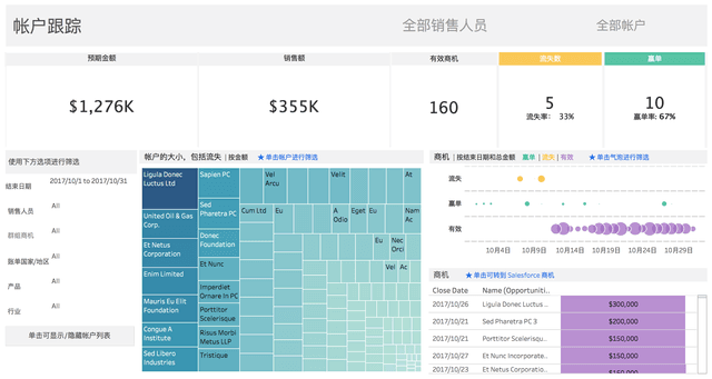 跟踪帐户业绩。在 Salesforce 中通过下钻查询查看每个商机的状态,获取详细信息。