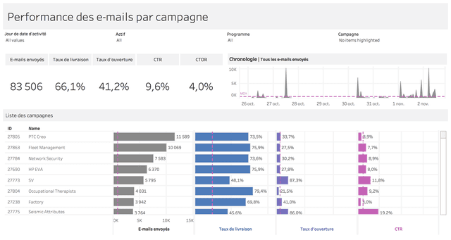 Performance des e-mails par campagne | Tableau Exchange