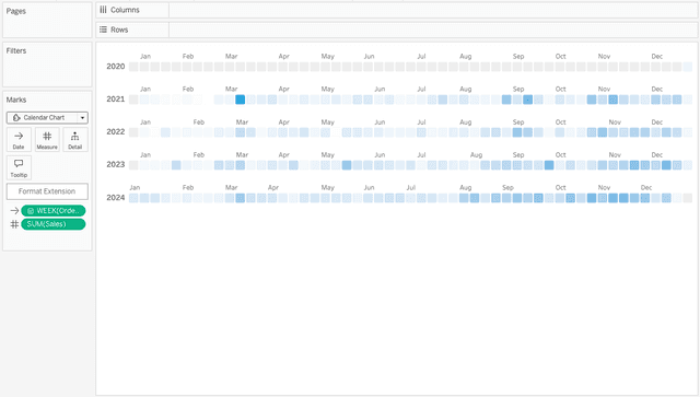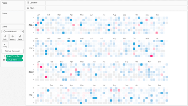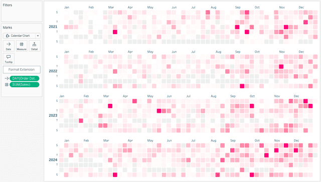 Calendar Chart is part of the Show Me More extension collection for Tableau.