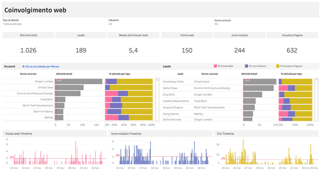 Rivela il livello d'interesse per tutti gli account e lead, mostrando le loro visualizzazioni di pagina, le visite web e l'invio di moduli.