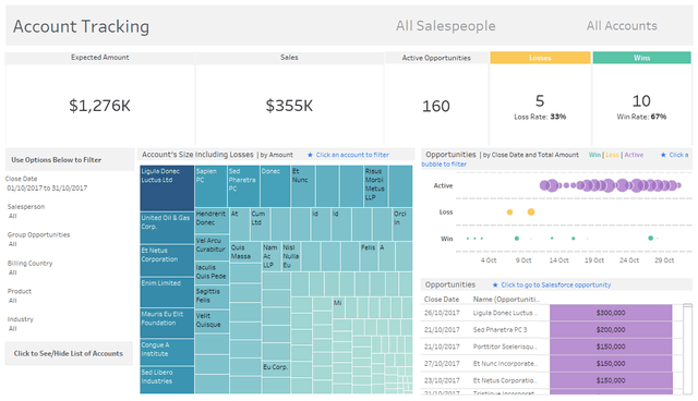 Realiza un seguimiento del rendimiento de sus cuentas. Profundice en los datos para ver el estado de cada oportunidad y acceder a información detallada en Salesforce.