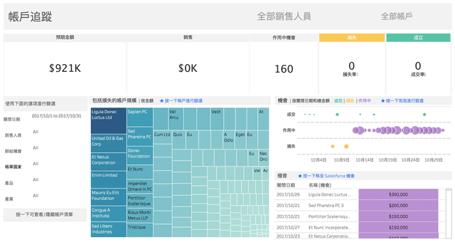 追蹤您帳戶的績效。深入查看每個機會的狀態並存取 Salesforce 中的詳細資訊。