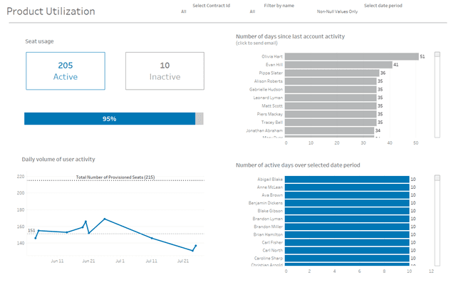 Effectue un suivi de l’utilisation des postes et de la tendance quotidienne des activités utilisateur. Avec les jours inactifs décomposés par chaque membre d’équipe individuel, vous pouvez réagir rapidement pour inciter vos équipes à davantage d’utilisation.