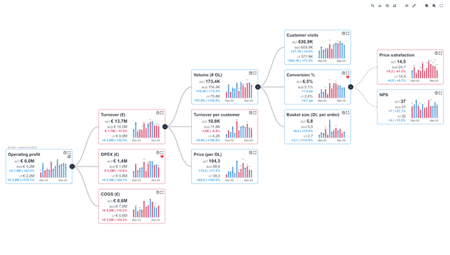 Integra informazioni dettagliate strategiche nelle tue dashboard Tableau con PowerKPIs Utilizza PowerKPIs come il nuovo punto di accesso centrale per le tue analisi in Tableau. Fornisce una potente piattaforma per illustrare le connessioni tra diversi KPI in un coinvolgente formato ad albero dei driver del valore, aggiungendo contesto prezioso alle decisioni basate sui dati. Dai riepiloghi di alto livello agli esami dettagliati di specifici fattori trainanti operativi, PowerKPIs migliora la capacità di narrare una storia convincente di prestazioni aziendali tramite una singola interfaccia intuitiva.