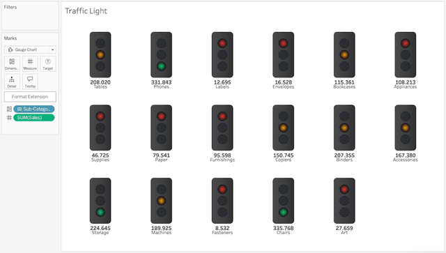 Gauge Chart is part of the Show Me More extension collection for Tableau.