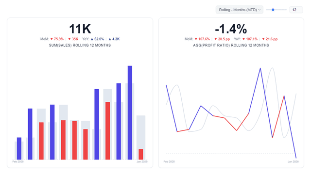 - Built-in Periods: MTD, QTD, YTD, Rolling — one click. No date calculations required.