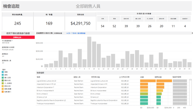 監控即將到來的機會並顯示在不久的將來關閉的機會,以及這些機會的階段、帳戶和規模。